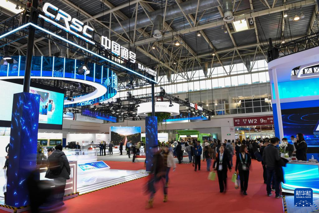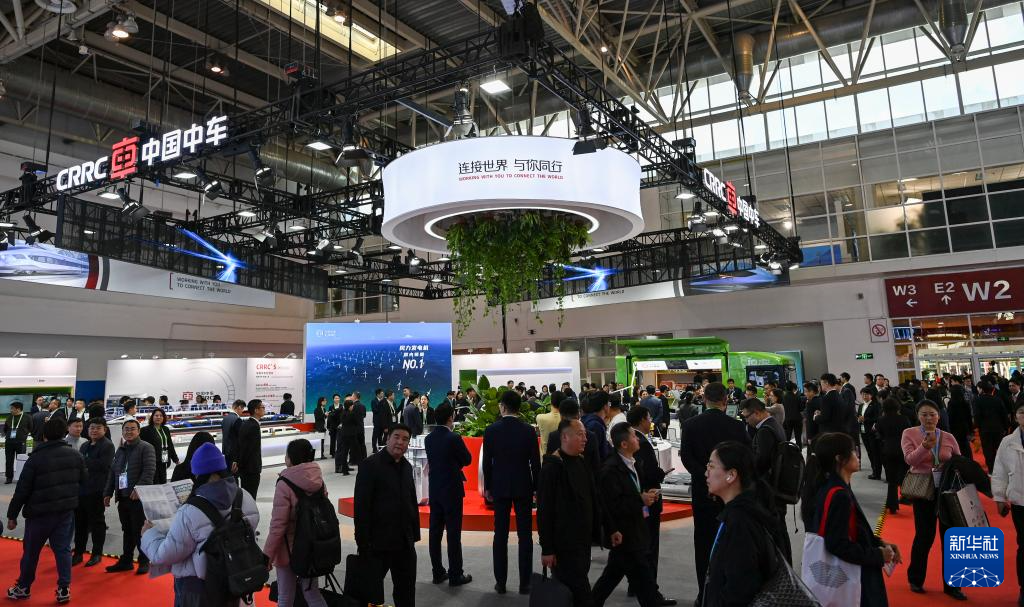 这是11月27日在第二届中国国际供应链促进博览会先进制造链展区拍摄的中国中车展台。