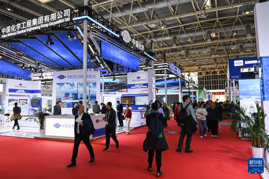 这是11月27日在第二届中国国际供应链促进博览会先进制造链展区拍摄的中交集团展台。