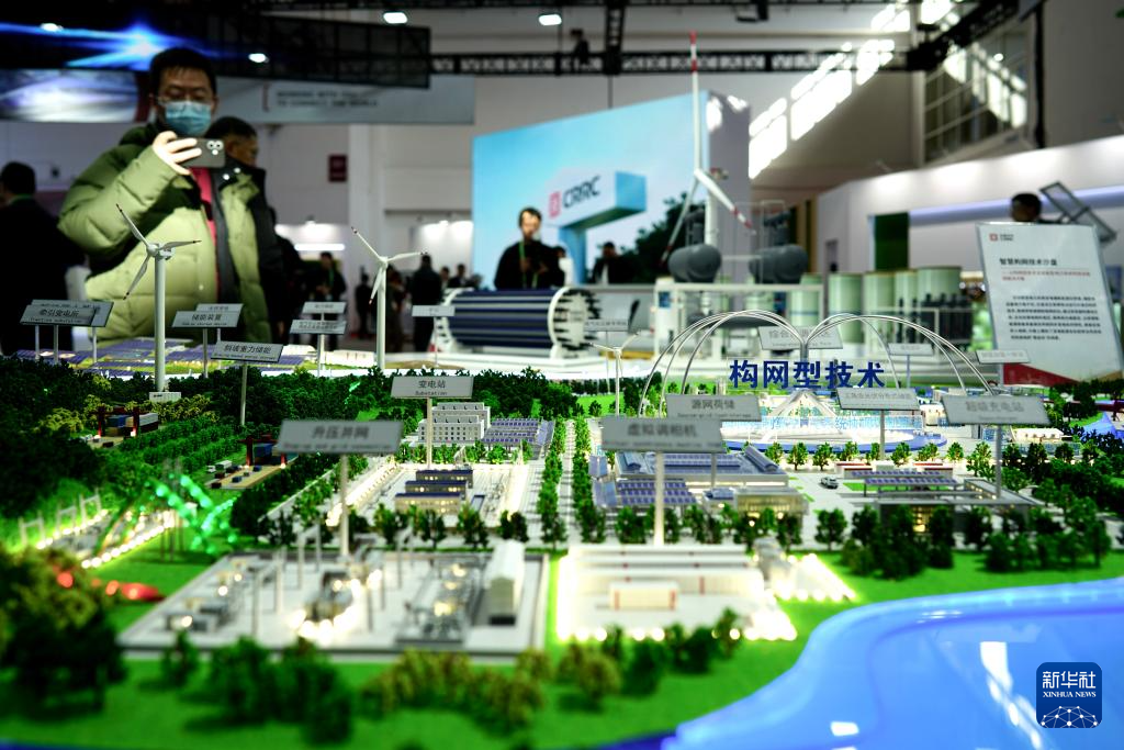 这是11月27日在第二届中国国际供应链促进博览会先进制造链展区中国中车展台拍摄的“智慧构网技术”沙盘。