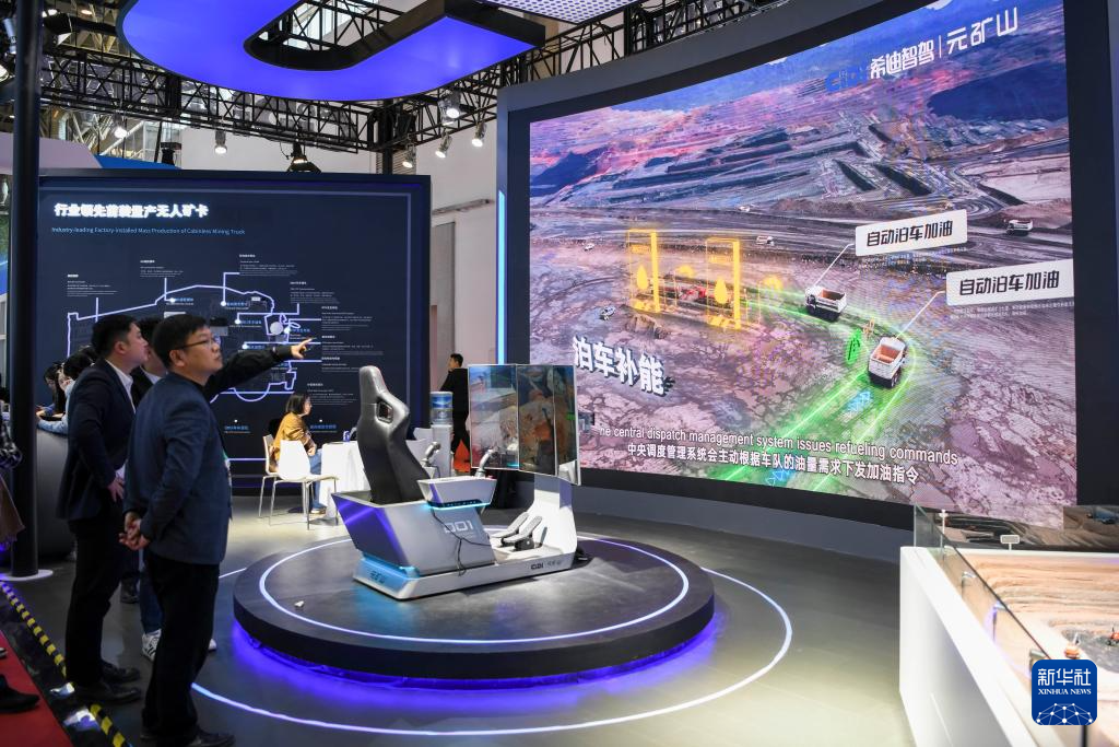 11月27日,人们在第二届中国国际供应链促进博览会先进制造链展区希迪智驾展台了解元矿山系统。
