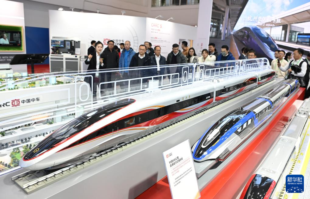 11月27日,参观者在链博会先进制造链展区参观中国中车展台。