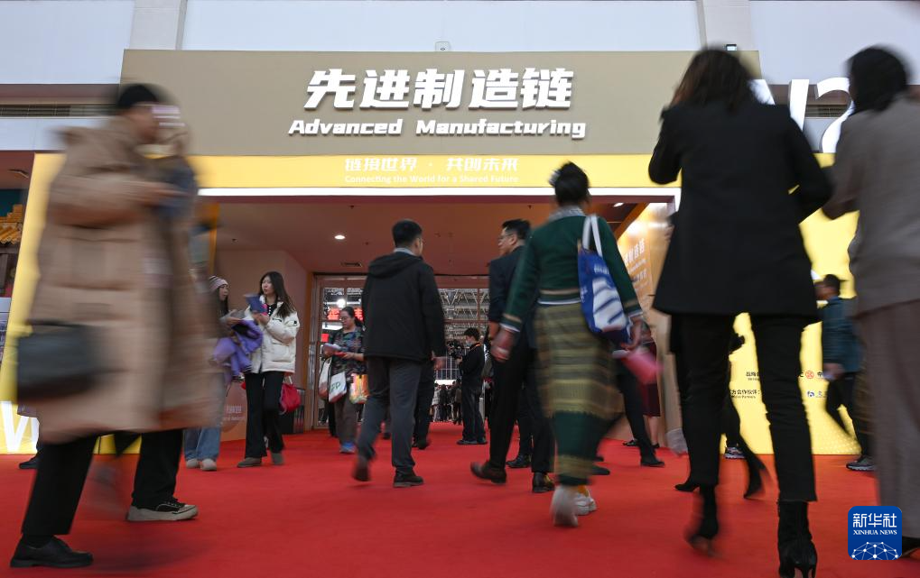 11月27日,人们在第二届中国国际供应链促进博览会先进制造链展区参观。