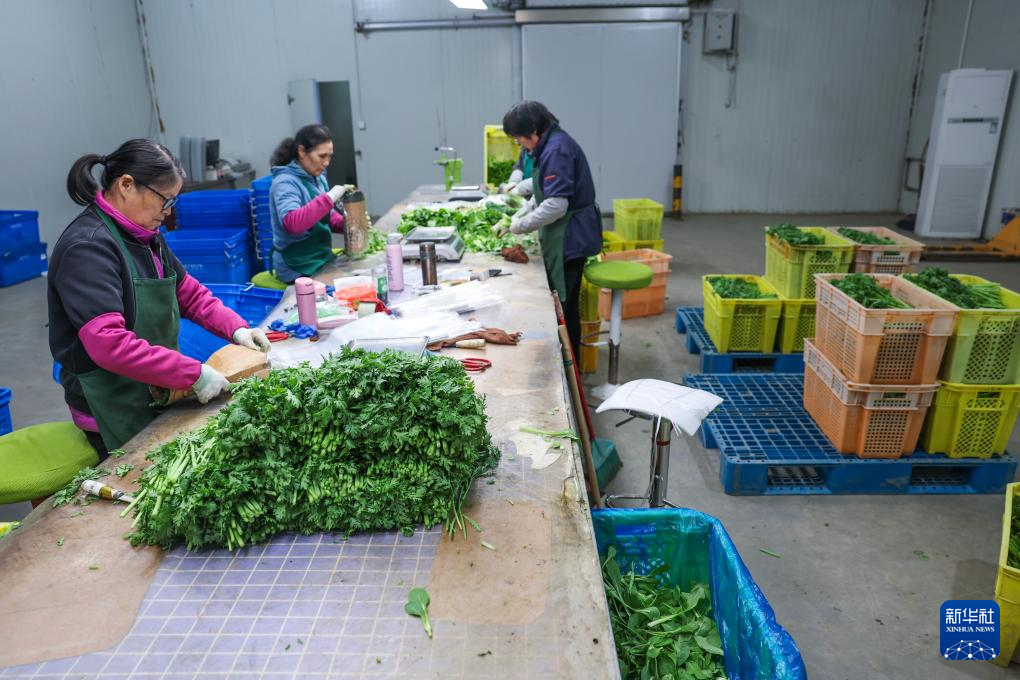11月28日,在嘉兴市南湖区世合有机农园,工人对刚采摘下来的太空蔬菜进行包装,这批产品将发往周边市场。