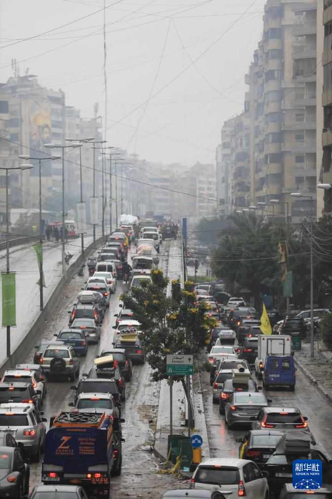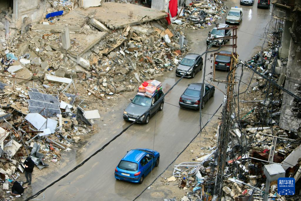 11月27日,在黎巴嫩贝鲁特南郊,返回家园的车辆排起长队。