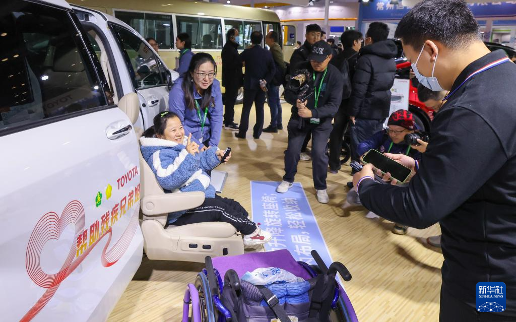 这是11月28日在中国国际福祉博览会拍摄的一款科技关爱版汽车和福祉座椅的模型。