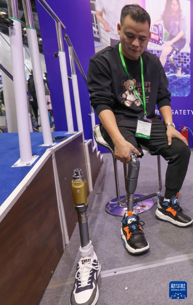 11月28日,思沃克科技有限公司的工作人员在展示他们的假肢产品,他们既是生产者也是使用者。
