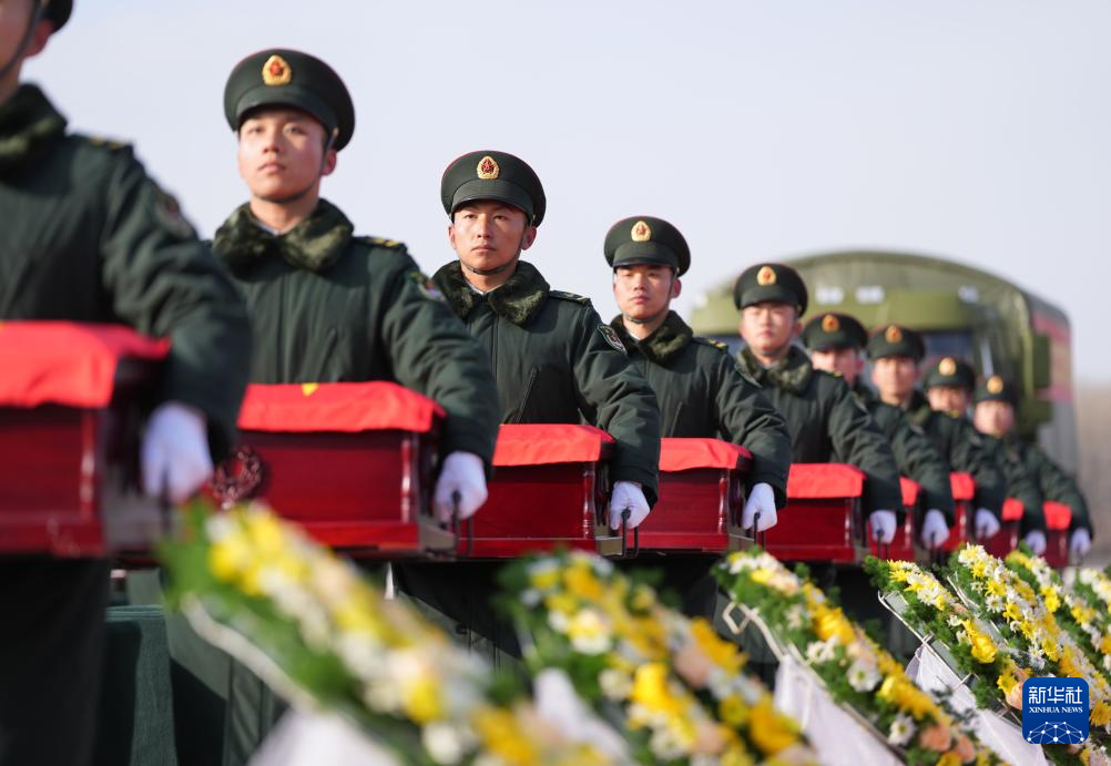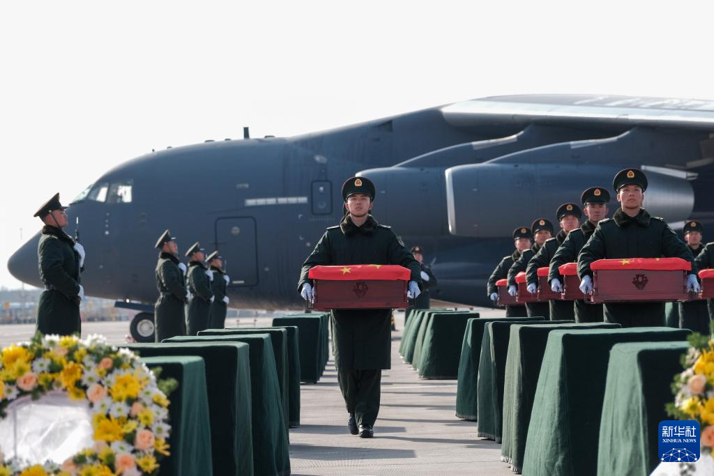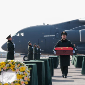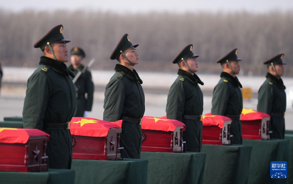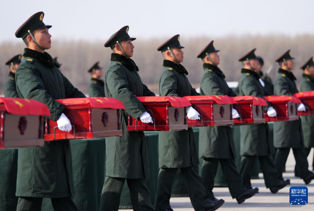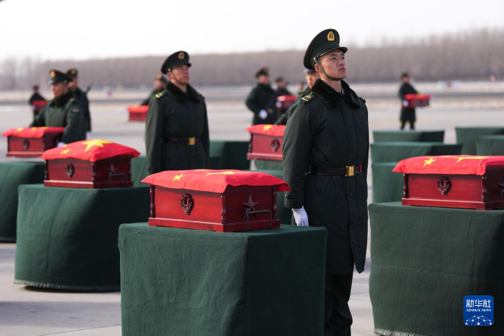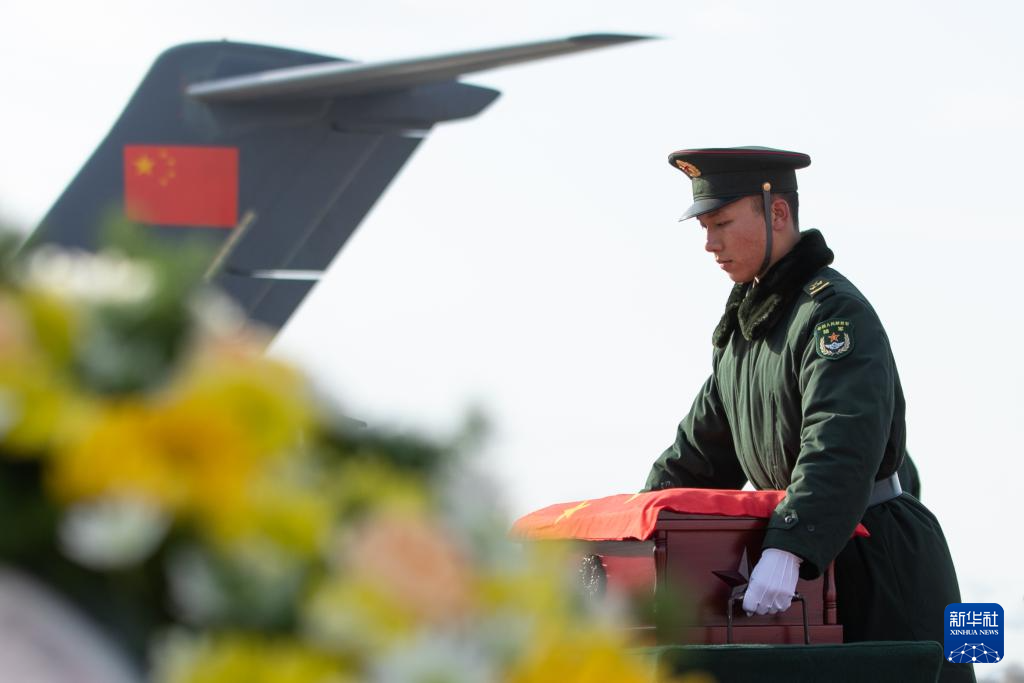 当日,第十一批在韩中国人民志愿军烈士遗骸回国。