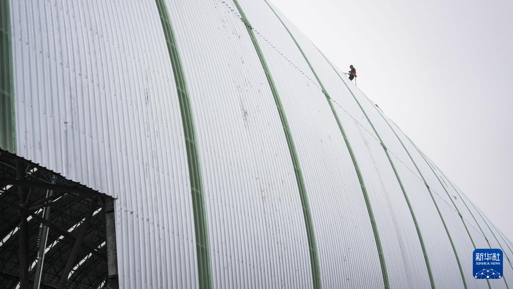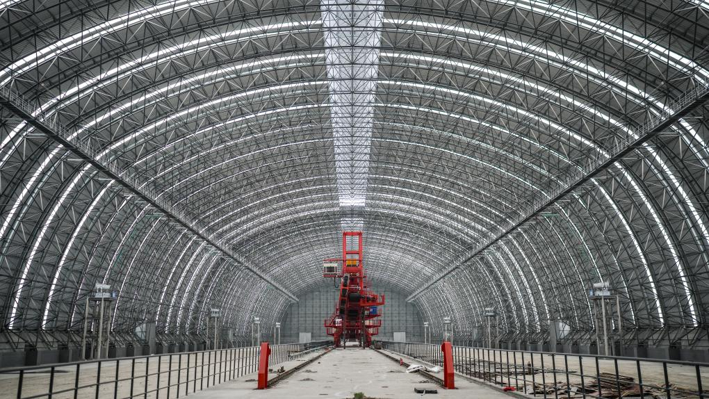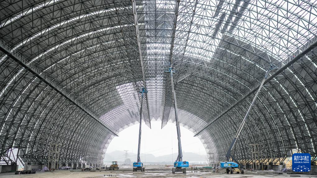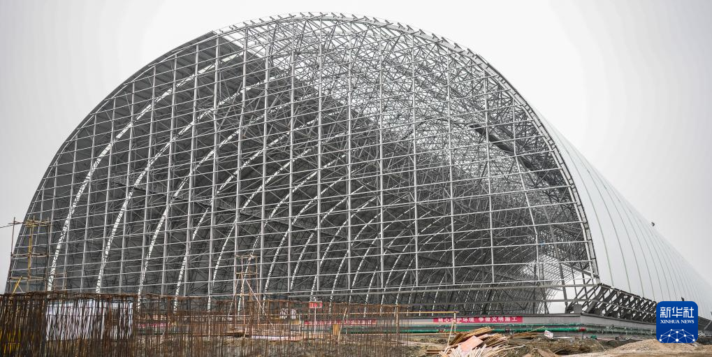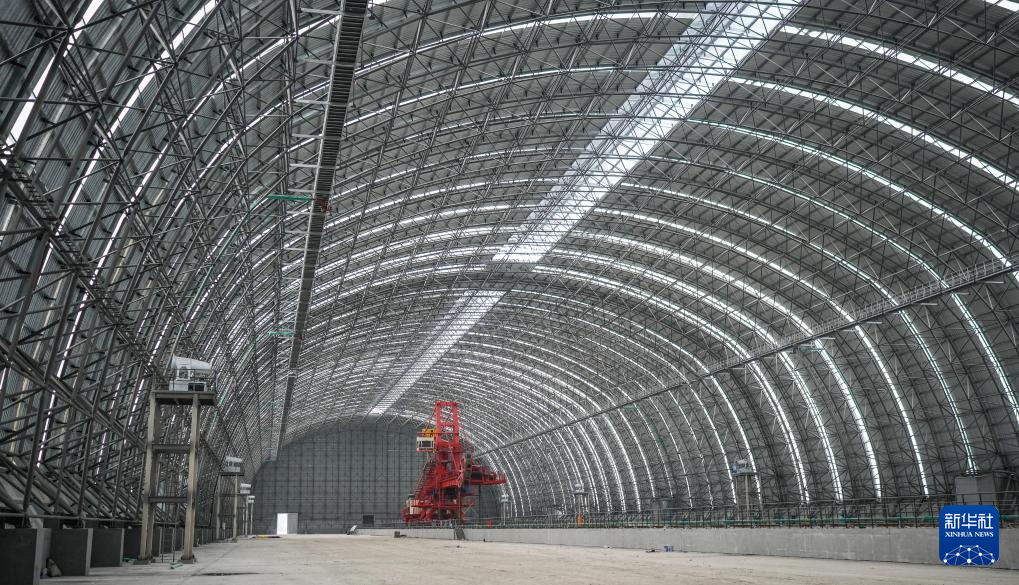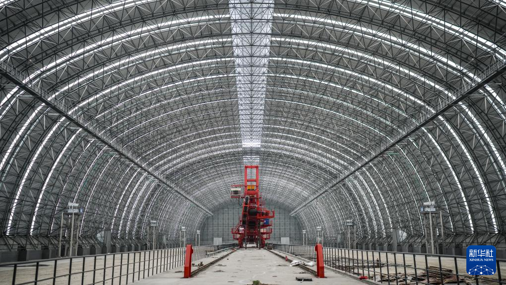 主体结构建设完成的六盘水市水城区煤炭储配基地1号储煤场(11月22日摄)。