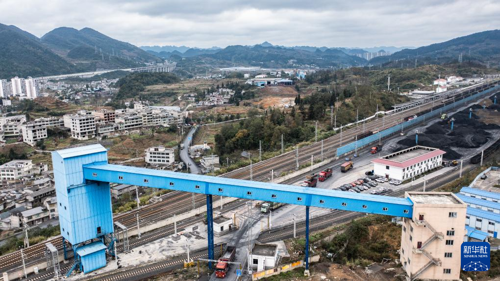 11月27日拍摄的毕节市织金县煤炭储配基地一期项目(无人机照片)。