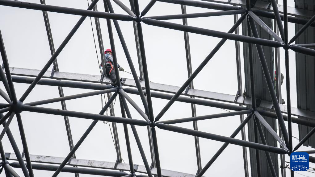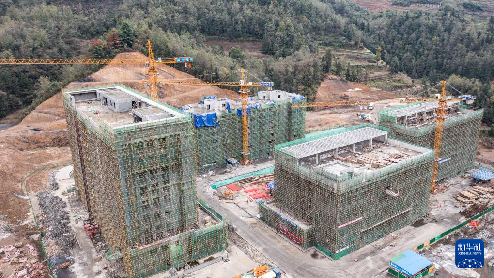 建设中的毕节市织金县煤炭储配基地二期项目多功能交易中心(无人机照片,11月27日摄)。