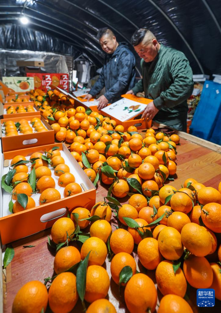 11月28日,在嘉兴南湖区余新镇浙江壹嘉亿农业科技有限公司包装厂房内,种植户将“红美人”柑橘装箱,准备运往周边的商超、水果市场等地销售。
