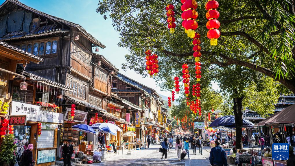 11月29日,黎平县肇兴侗寨内挂起了印有“中国侗年”字样的红灯笼。