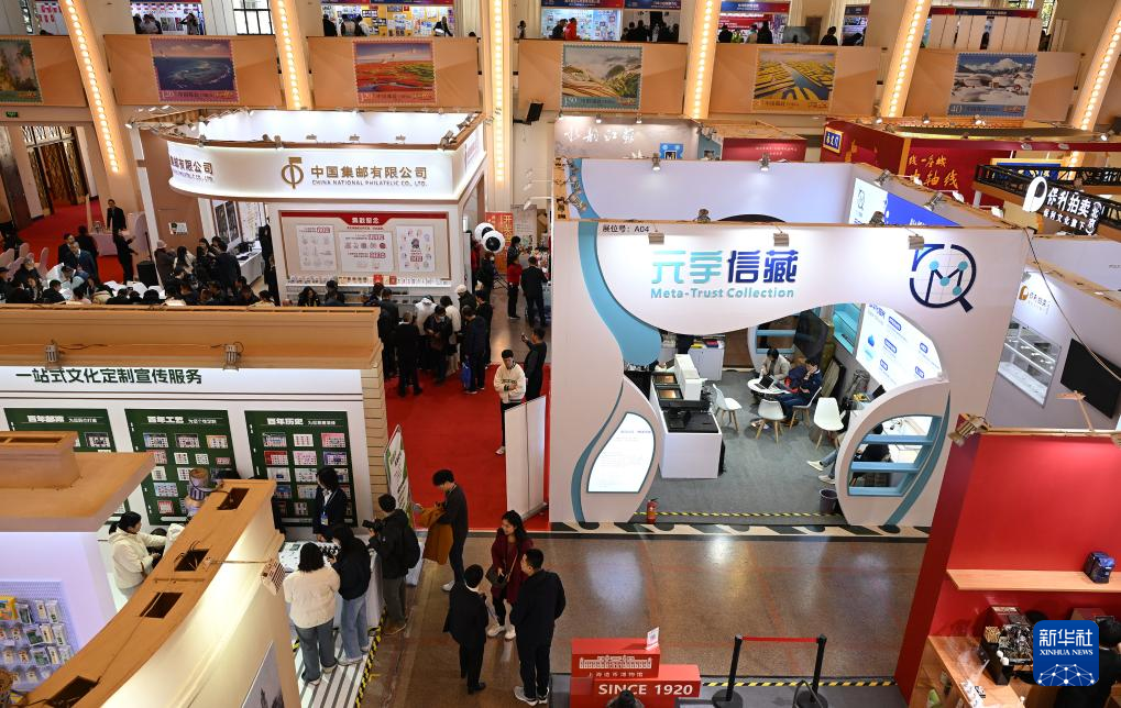 11月29日,参观者在中国集邮有限公司展台选购邮品。