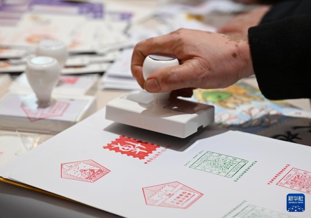 11月29日,集邮爱好者在中国2024亚洲国际集邮展览上盖章打卡。