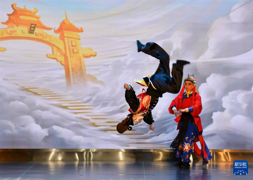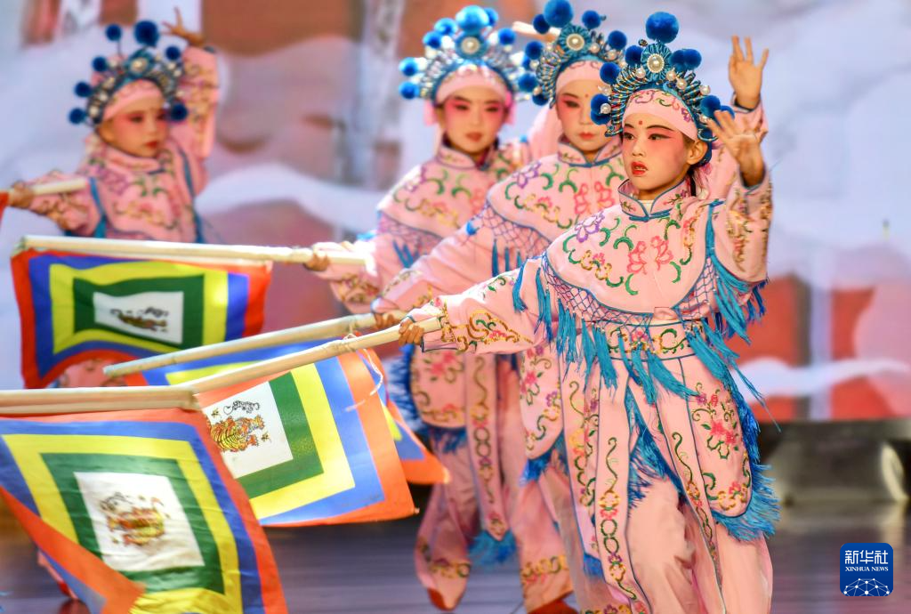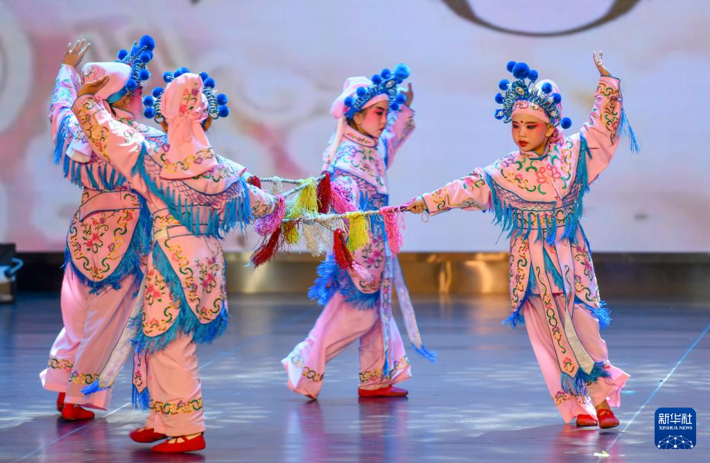 当日,云南省昆明市五华区文林小学在五华区青少年宫开展滇剧演出活动,专业滇剧演员和滇剧传习班的学生共同表演节目。文林小学是云南省滇剧文化传承项目的第一所试点小学,学校滇剧传习班坚持每周上课,并定期开展研学活动与公演。