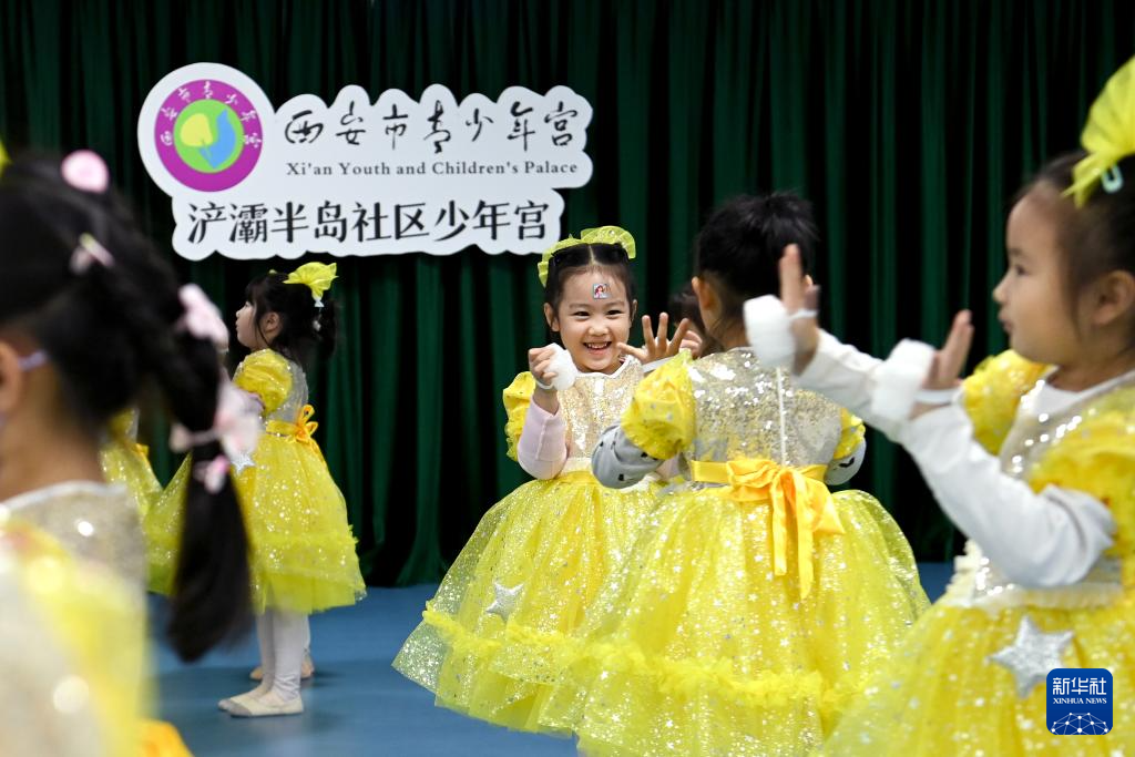 孩子们在西安市未央区浐灞半岛社区少年宫上舞蹈课(11月29日摄)。浐灞半岛社区引进西安市青少年宫的师资,在社区开设舞蹈、书法、声乐、航模等多项课程。