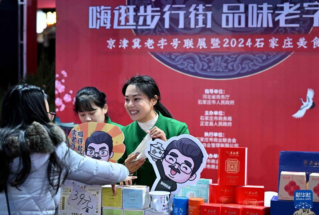 11月30日,商家在京津冀老字号联展暨2024石家庄美食节上推销产品。