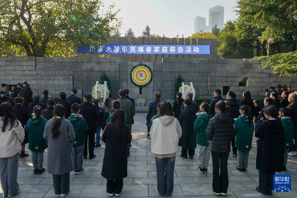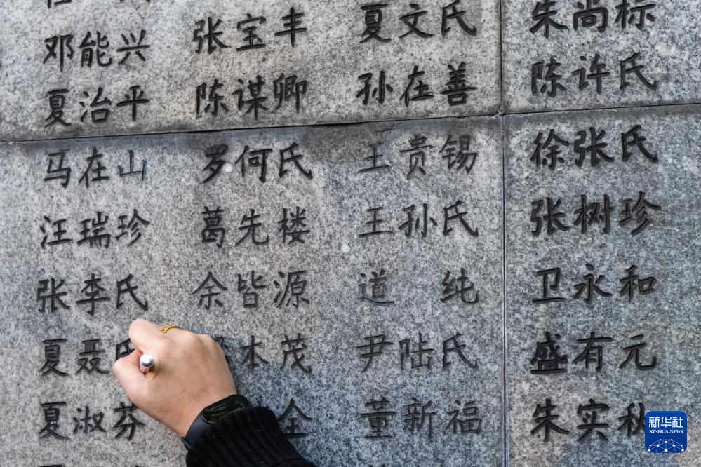当日,南京大屠杀死难者家庭祭告活动在侵华日军南京大屠杀遇难同胞纪念馆举行。幸存者夏淑琴、刘民生、艾义英带着家人来到侵华日军南京大屠杀遇难同胞纪念馆的“哭墙”前,祭奠在87年前遇难的亲人和同胞。