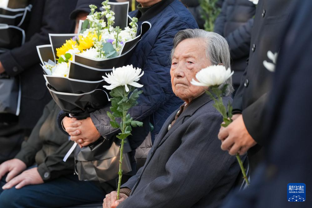 12月1日,南京大屠杀幸存者夏淑琴参加南京大屠杀死难者家庭祭告活动。