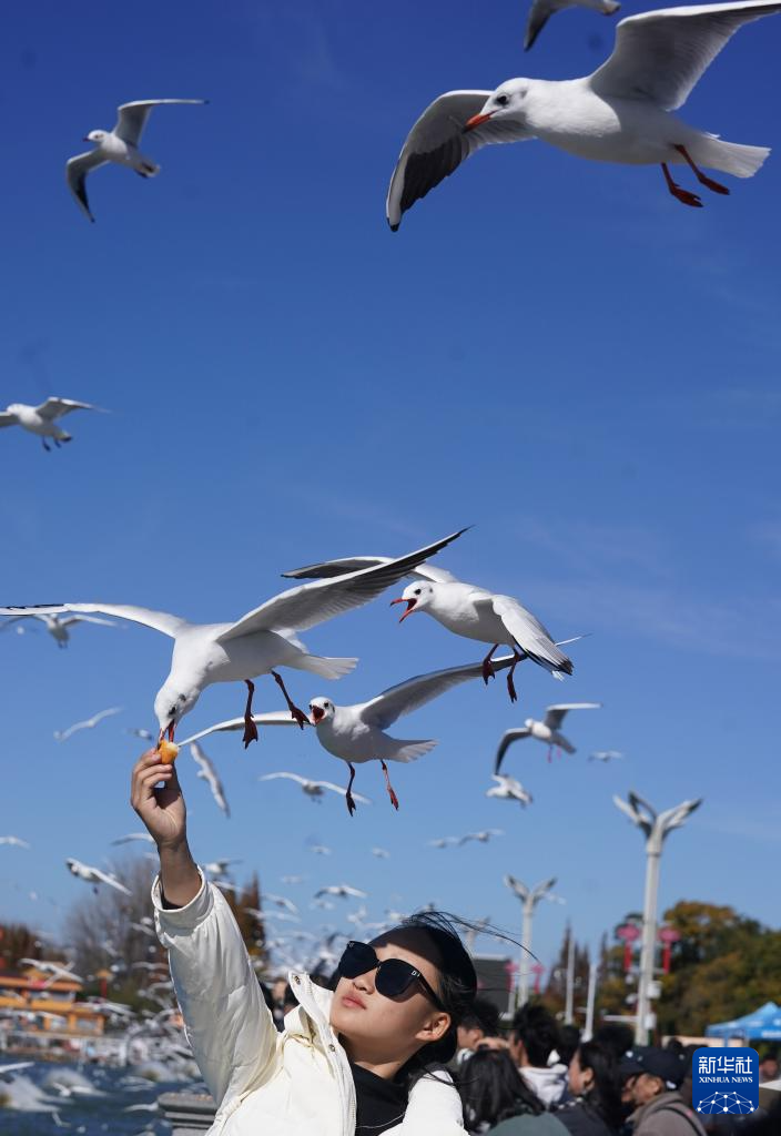 近日,大批红嘴鸥陆续抵达春城昆明,吸引大批游客前来观赏。据昆明鸟类协会介绍,截至目前,飞抵昆明的红嘴鸥已有3万多只,预计12月10日左右将达最高峰,海埂公园、海洪湿地、宝丰湿地、翠湖等地都是经典的观鸥点。