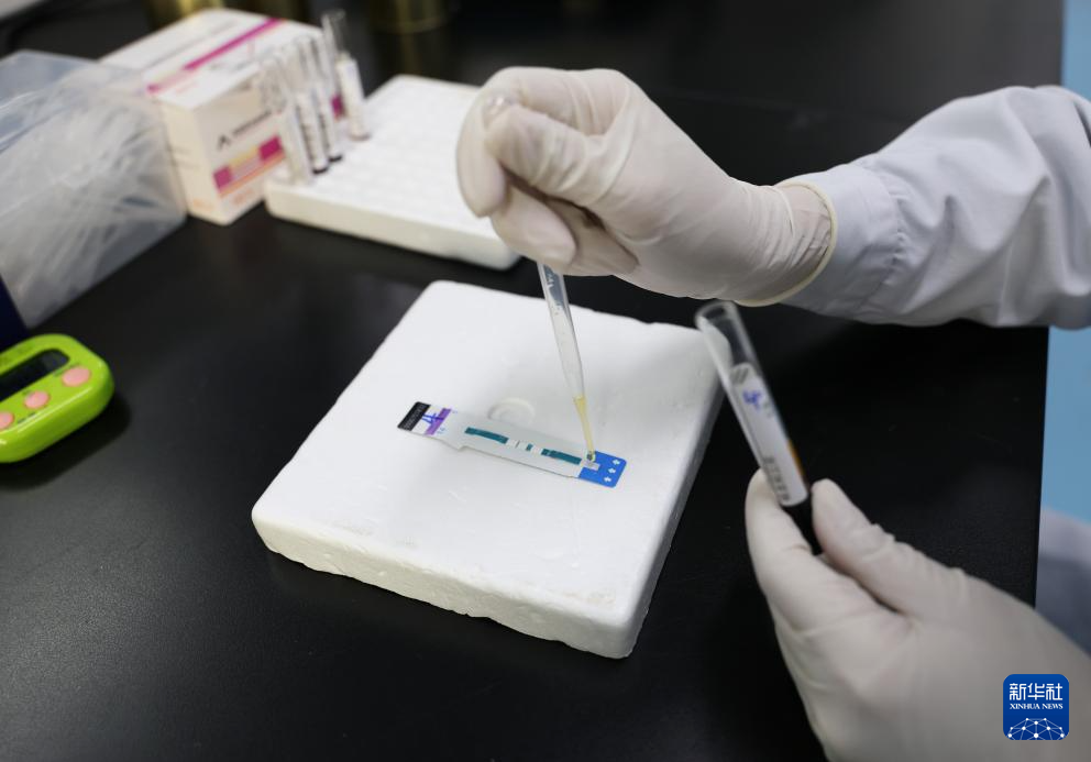 11月21日,在南宁市第四人民医院检验科免疫室,医生对待检样本进行艾滋病病毒检测。