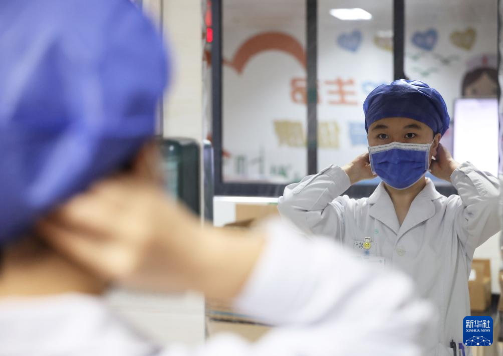 11月24日,在南宁市第四人民医院感染科一病区,赵蕊在查房前做准备工作。