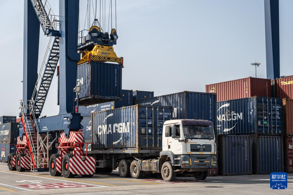 11月30日,工人在尼日利亚拉各斯的莱基港引导货车运输货物。