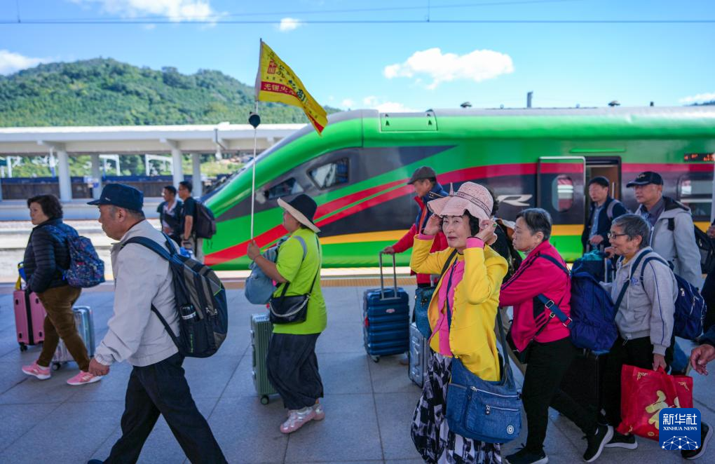 12月3日,旅客乘坐列车抵达中老铁路磨憨站。