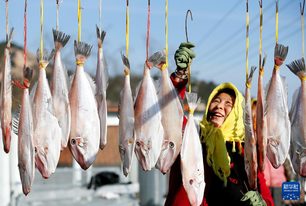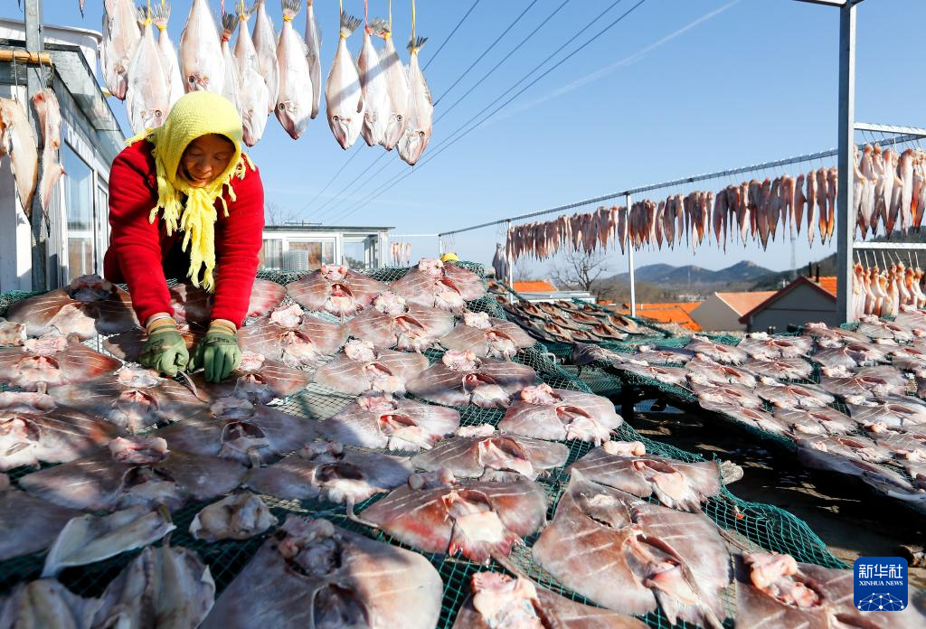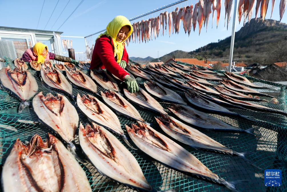 初冬时节,山东省青岛市即墨区沿海一带的渔民趁天气晴好,将捕获的海鱼经过切割、腌制、晾晒等工序加工成鱼干,通过线上线下途径销售,增收创收。