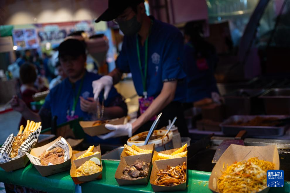 11月24日,工作人员在第二十四届澳门美食节烹调食物。