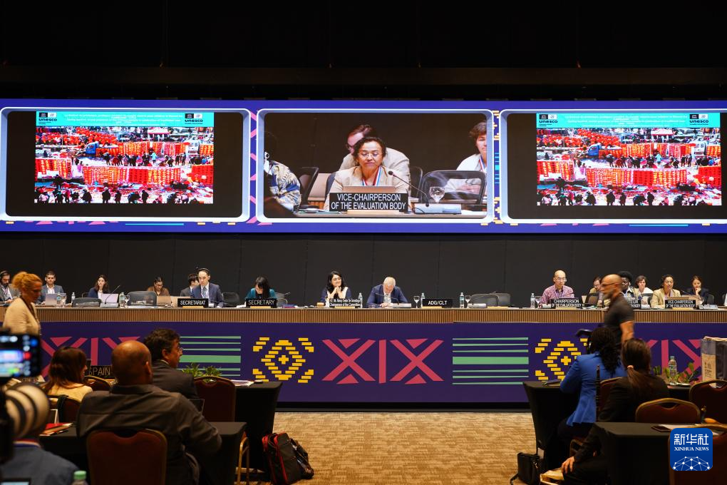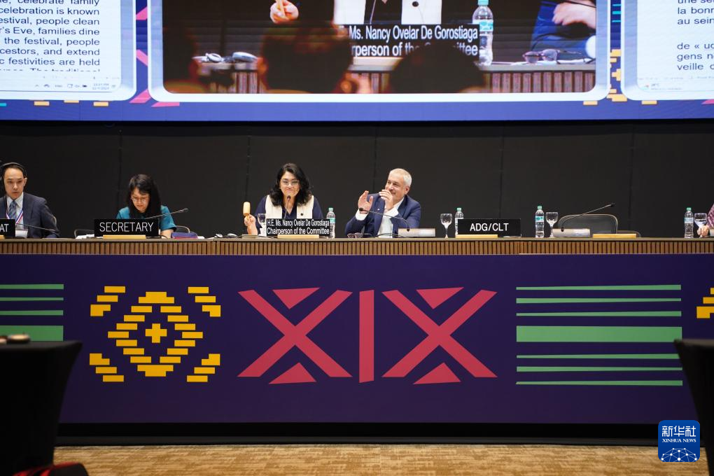 这是12月4日在巴拉圭亚松森拍摄的联合国教科文组织保护非物质文化遗产政府间委员会第19届常会评审现场。