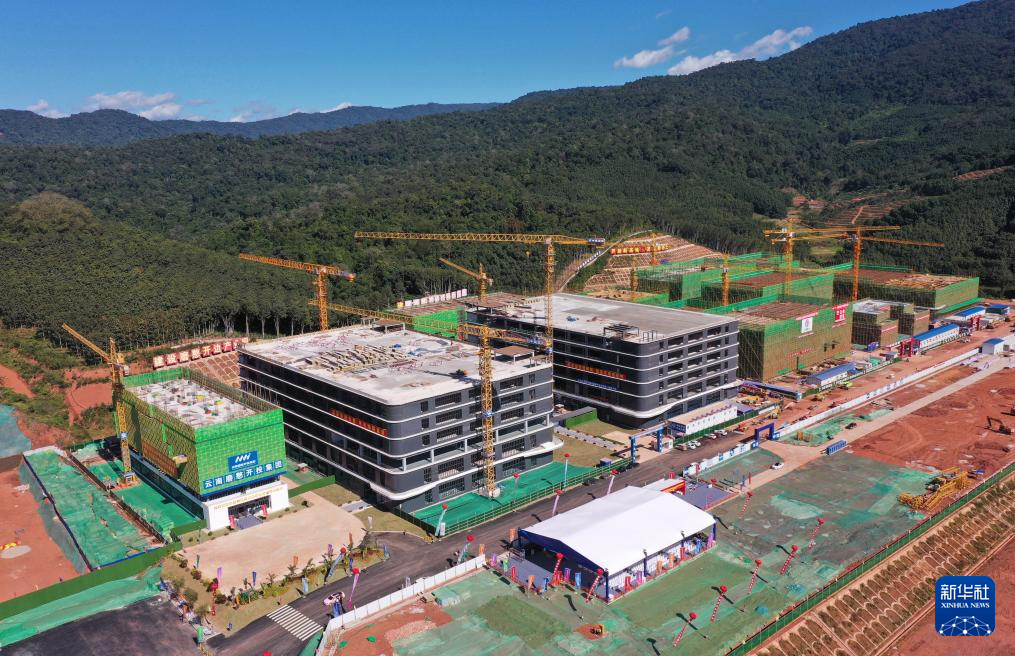 这是12月3日拍摄的建设中的磨憨南坡国际产业示范园(无人机照片)。