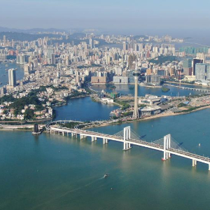 这是11月26日从横琴方向拍摄的澳门(无人机照片)。
