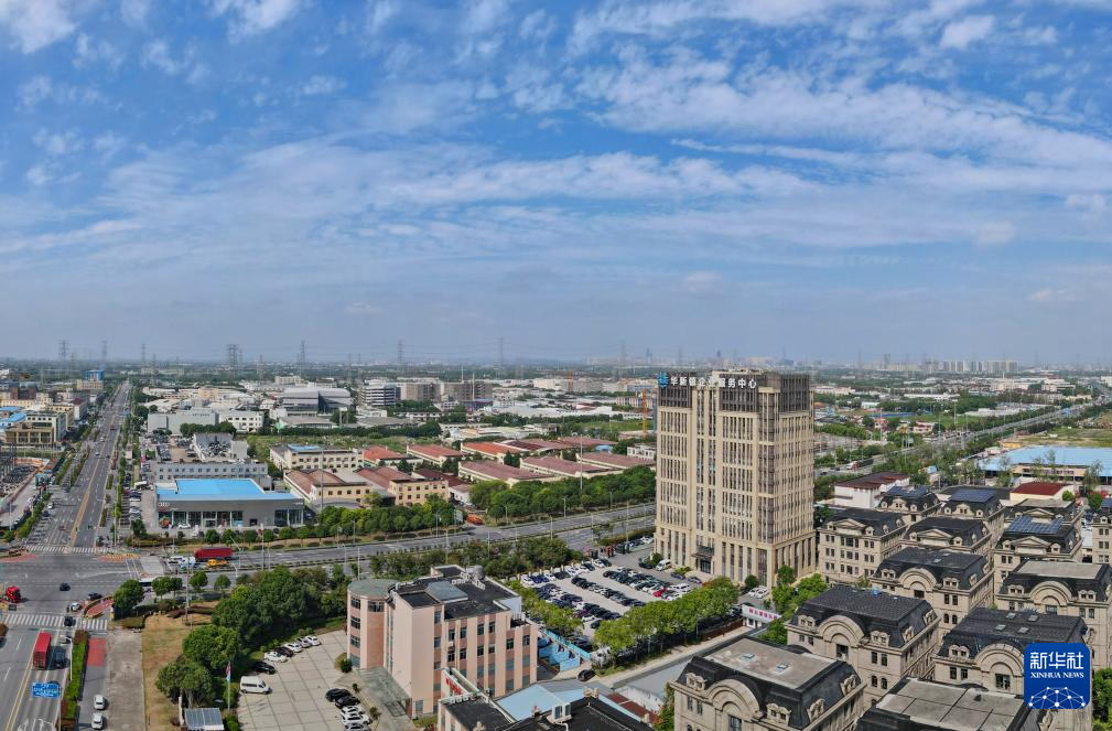 这是位于上海市青浦区的华新镇企业服务中心大楼(无人机照片,10月9日摄)。