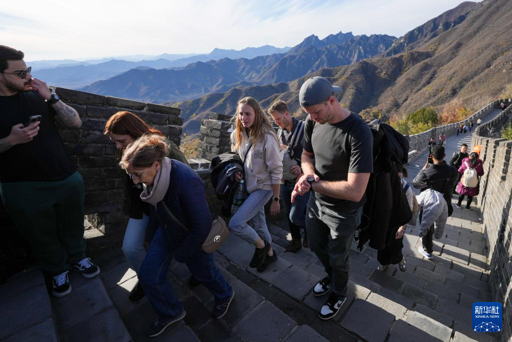 11月4日,外国游客在北京慕田峪长城游览。