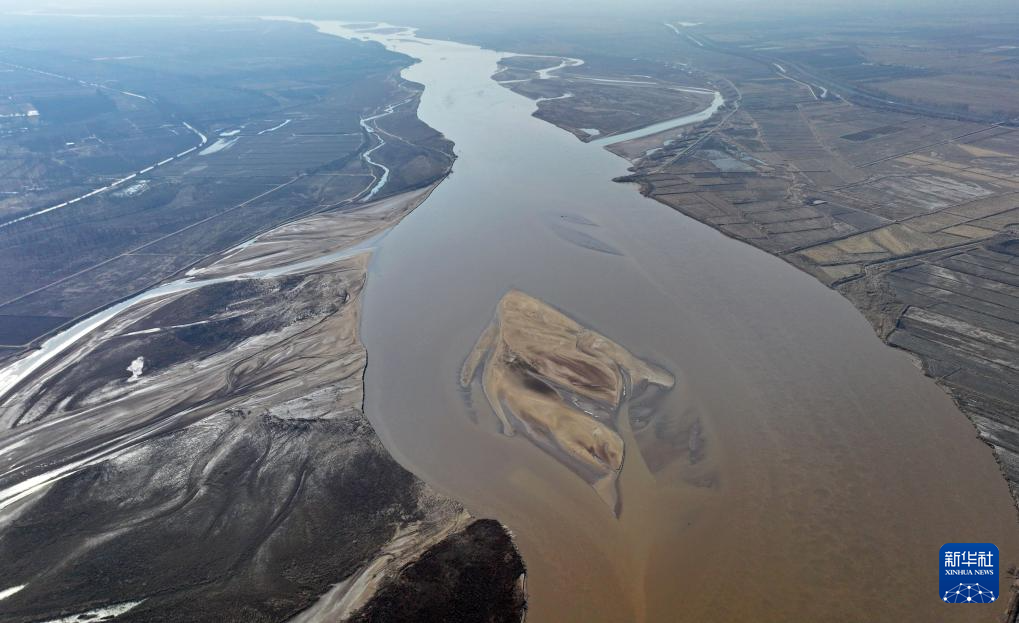 这是12月4日在宁夏石嘴山市拍摄的黄河景色(无人机照片)。