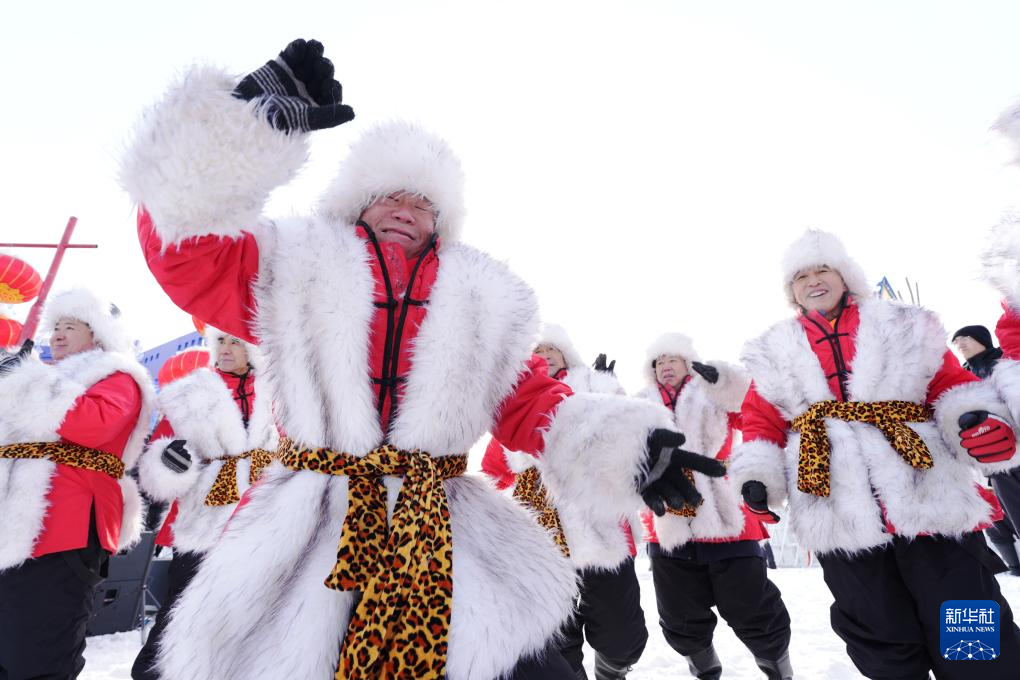 12月7日,装扮成“采冰汉子”的采冰人员在现场表演。