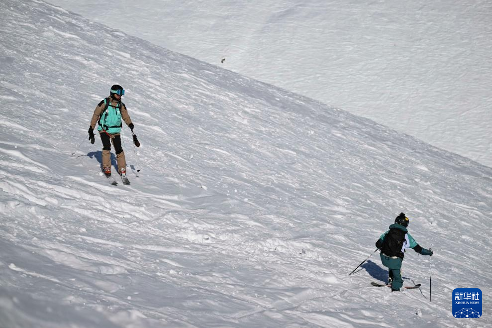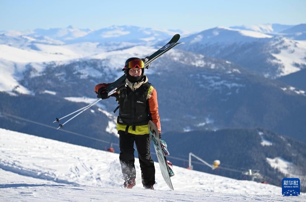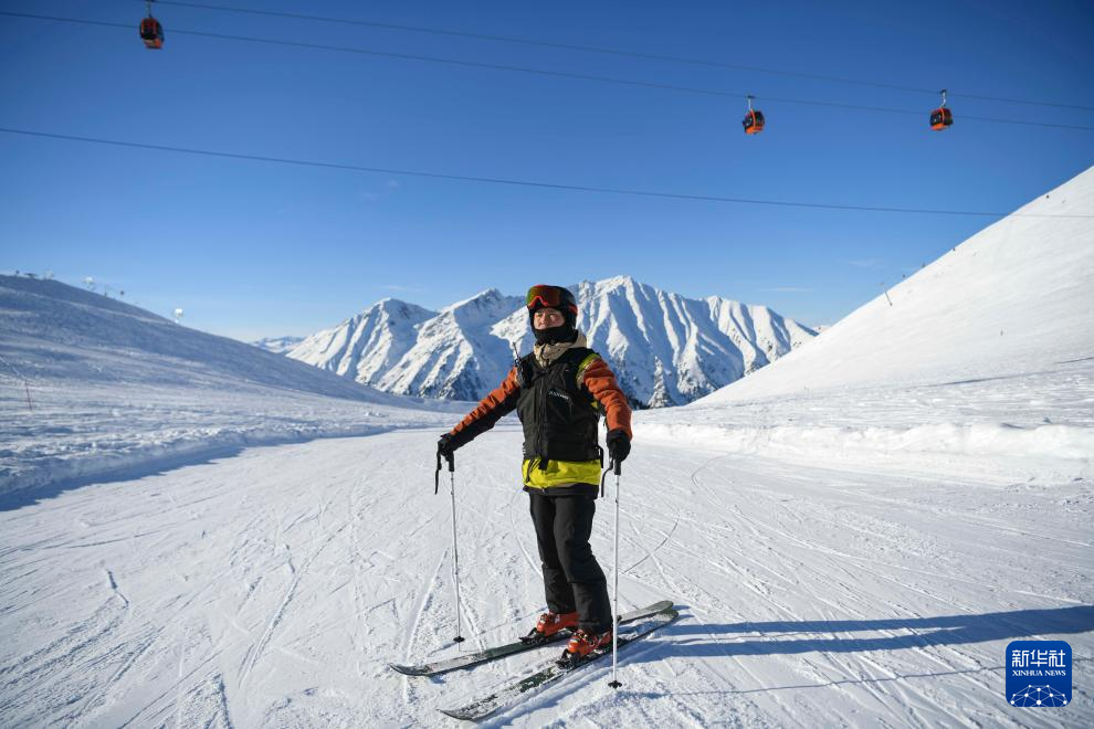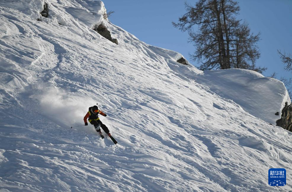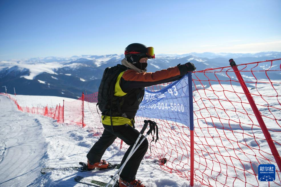 12月3日,滑雪巡救员满德力在吉克普林国际滑雪度假区巡逻。