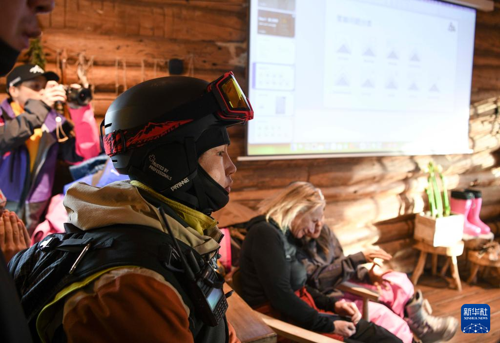 12月3日,在吉克普林国际滑雪度假区粉雪营地,满德力参加一场由新西兰雪崩教育专家举行的分享会。