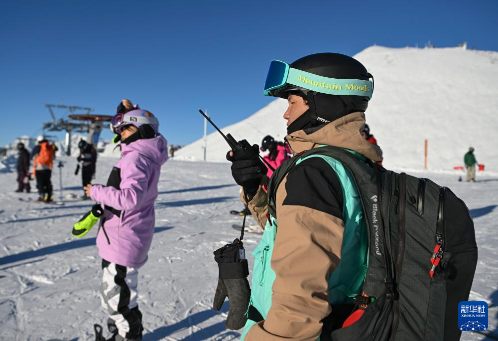12月5日,满德力在吉克普林国际滑雪度假区巡逻,向雪友叮嘱安全注意事项。