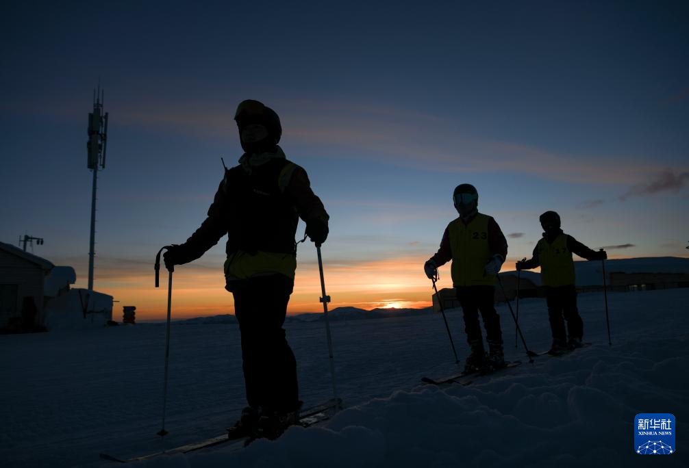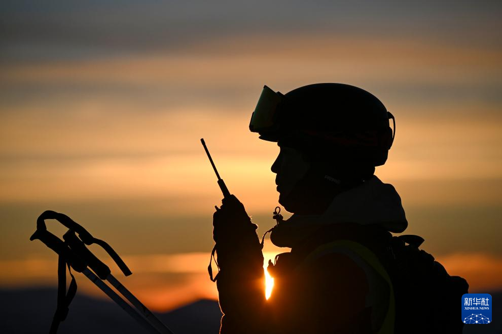 夕阳西下,满德力在吉克普林国际滑雪度假区巡逻(12月3日摄)。