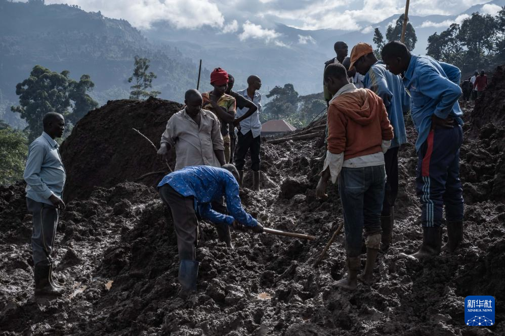 11月29日,在乌干达东部布兰布利地区,救援人员和民众在泥石流灾害现场搜救。