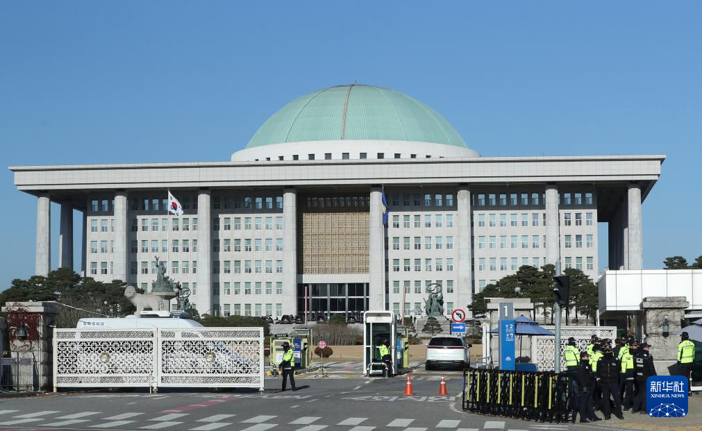12月4日,警察聚集在韩国首尔的国会议事堂附近。