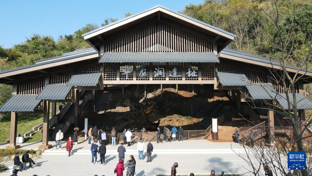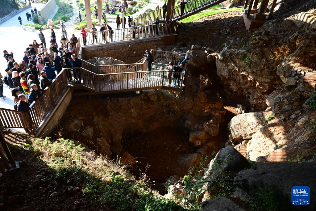 12月6日,观众在位于安徽省池州市东至县的华龙洞遗址参观。