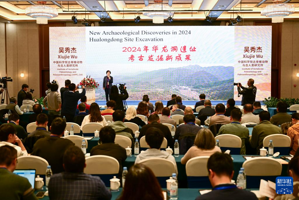 12月6日,中国科学院古脊椎动物与古人类研究所研究员吴秀杰在2024华龙洞遗址学术研讨会上介绍2024年华龙洞遗址考古发掘新成果。