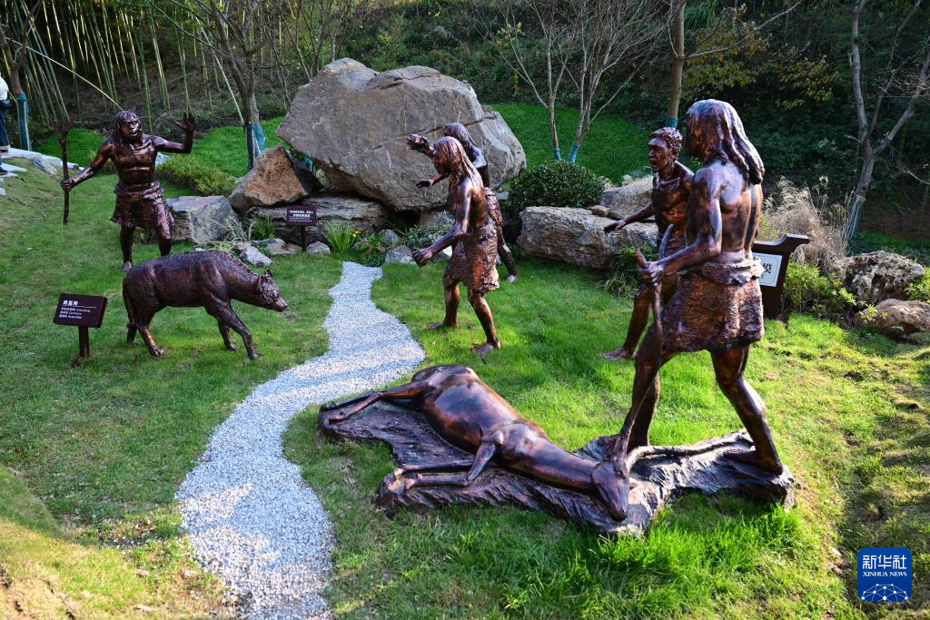 这是12月6日在位于安徽省池州市东至县的华龙洞遗址拍摄的华龙洞人狩猎场景复原。