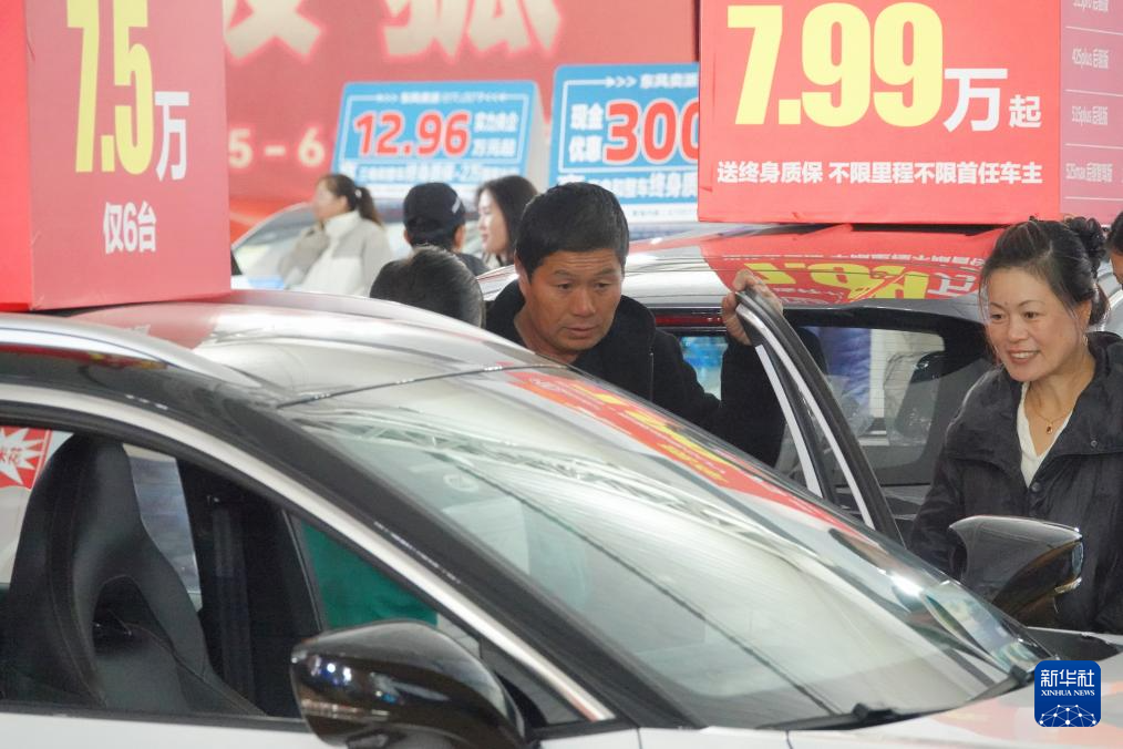 12月7日,消费者在山东烟台冬季惠民车展上了解优惠促销车型。