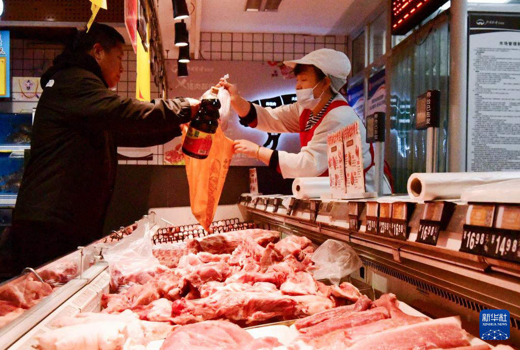 12月9日,消费者在河北省石家庄市栾城区一家超市选购肉类。