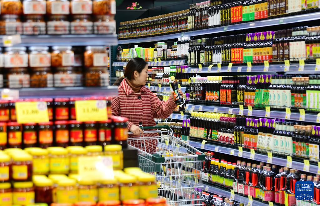 12月9日,消费者在江苏省无锡市一家超市购买调味品。