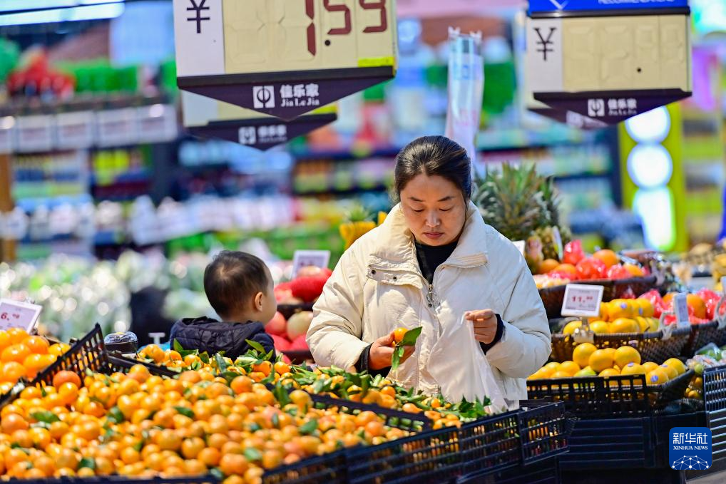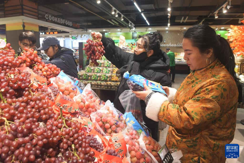 12月9日,消费者在河北省石家庄新乐市一家超市选购水果。